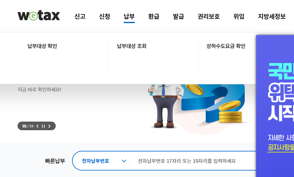 - 위택스 홈페이지: 조회 후, 위택스 홈페이지에서 바로 납부할 수 있습니다.