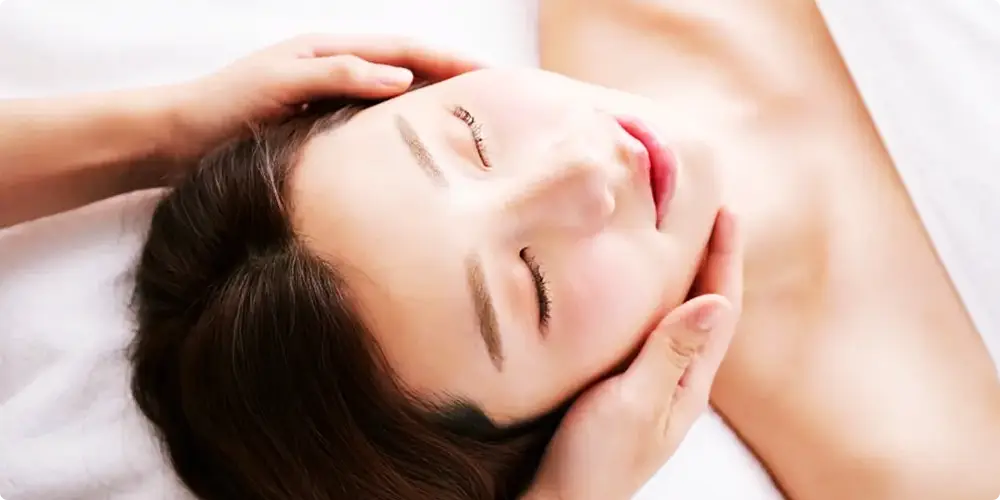 경락마사지를 마무리할 때는 림프 마사지를 활용합니다. 이마에 손바닥을 대고 관자놀이 방향으로 뺨에서 쇄골까지 목선 측면을 천천히 쓸어 내려줍니다. 이때 힘을 주지 않고 부드럽게 마사지합니다.