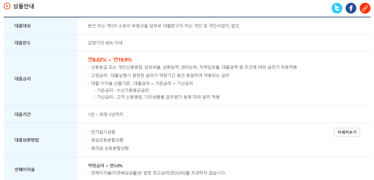 | IBK저축은행 부동산(주택)담보대출 대출대상 및 한도, 금리(2024년) (0) | 2024.06.22 |