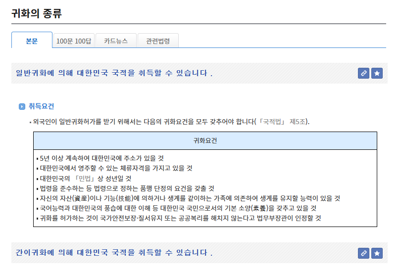 국적 > 국적의 취득 > 귀화에 의한 취득 > 귀화의 종류 (본문) | 찾기쉬운 생활법령정보