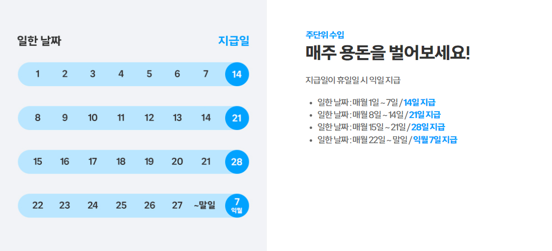 - 매월 1일~7일: 이번 달 14일