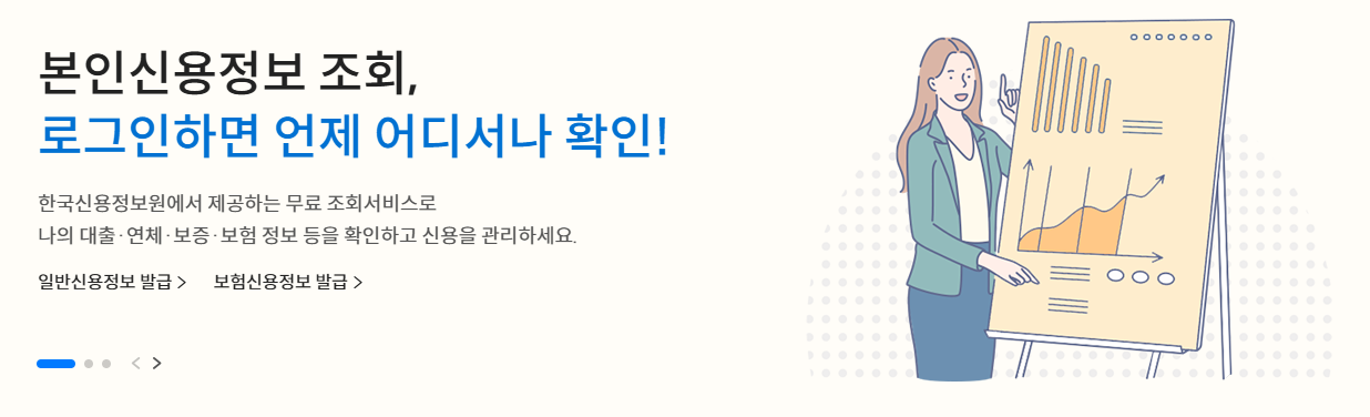 본인신용정보 열람서비스에 접속하여 본인의 신용 정보를 확인할 수 있습니다. 이 서비스는 한국신용정보원에서 제공하는 무료 서비스로, 대출, 연체, 보증, 보험 정보 등을 관리할 수 있게 도와줍니다.