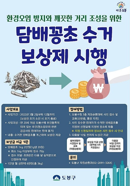 담배꽁초 수거보상제 - 청소 - 분야별정보 - 성동구청 대표홈페이지